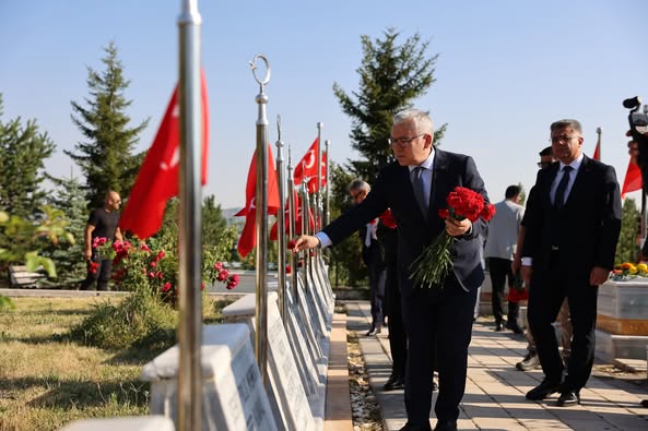 Vali Yılmaz Şimşek, Tugay Komutanı Piyade Albay Cüneyt Mutlu, Belediye Başkanı Adem Uzun ve il protokolü, 15 Temmuz Demokrasi ve Milli Birlik Günü dolayısıyla şehitlerimizin kabirlerini ziyaret etti.