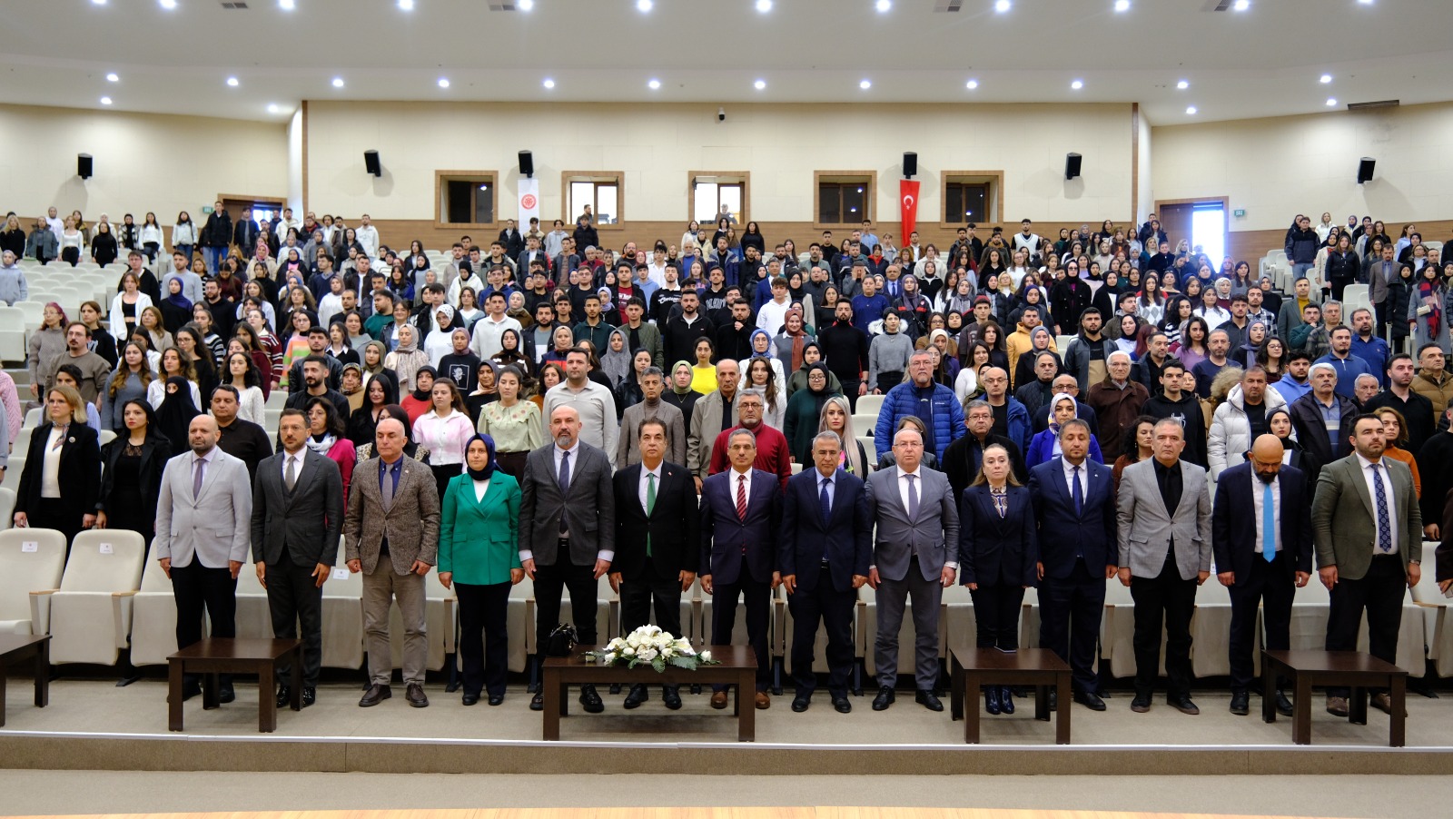 4 Eylül Kültür Merkezi’nde gerçekleştirilen programa; SCÜ Rektörü Prof. Dr. Ahmet Şengönül, Sivas Belediye Başkan Yardımcısı Esra Meran Uslu, Rektör Yardımcıları Prof. Dr. Hayati Öztürk, Prof. Dr. Salih Cem İnan ve Prof. Dr. Süleyman Değirmen, Genel Sekreter Doç. Dr. Yüksel Aydın, dekanlar, müdürler, akademik ve idari personel ile öğrenciler katıldı.