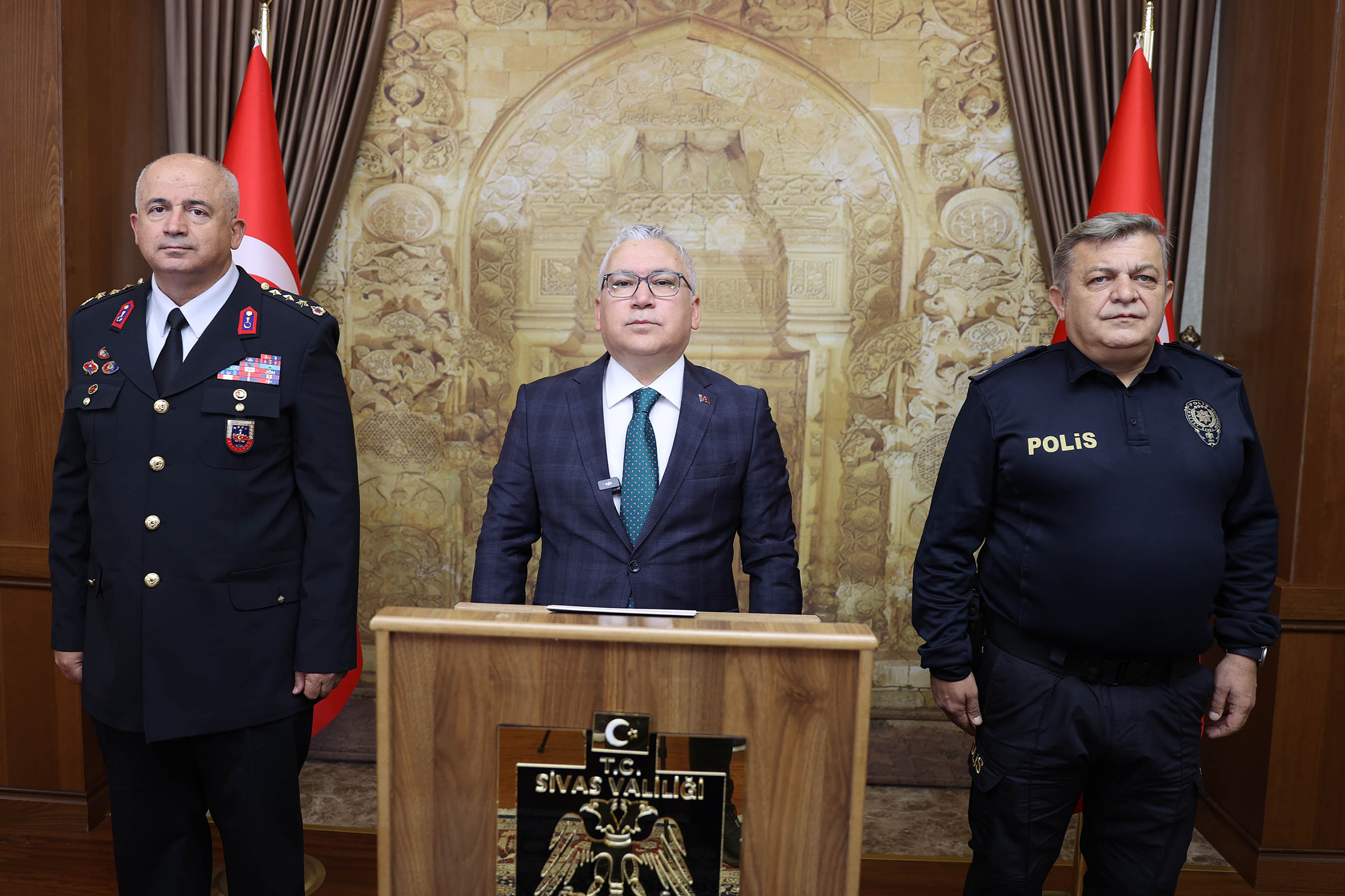 Sivas Valisi Yılmaz Şimşek başkanlığında gerçekleştirilen bilgilendirme toplantısına, İl Emniyet Müdürü Burhan Akçay ve İl Jandarma Komutanı J. Kd. Alb. Adem Taşkın da katılım sağladı.