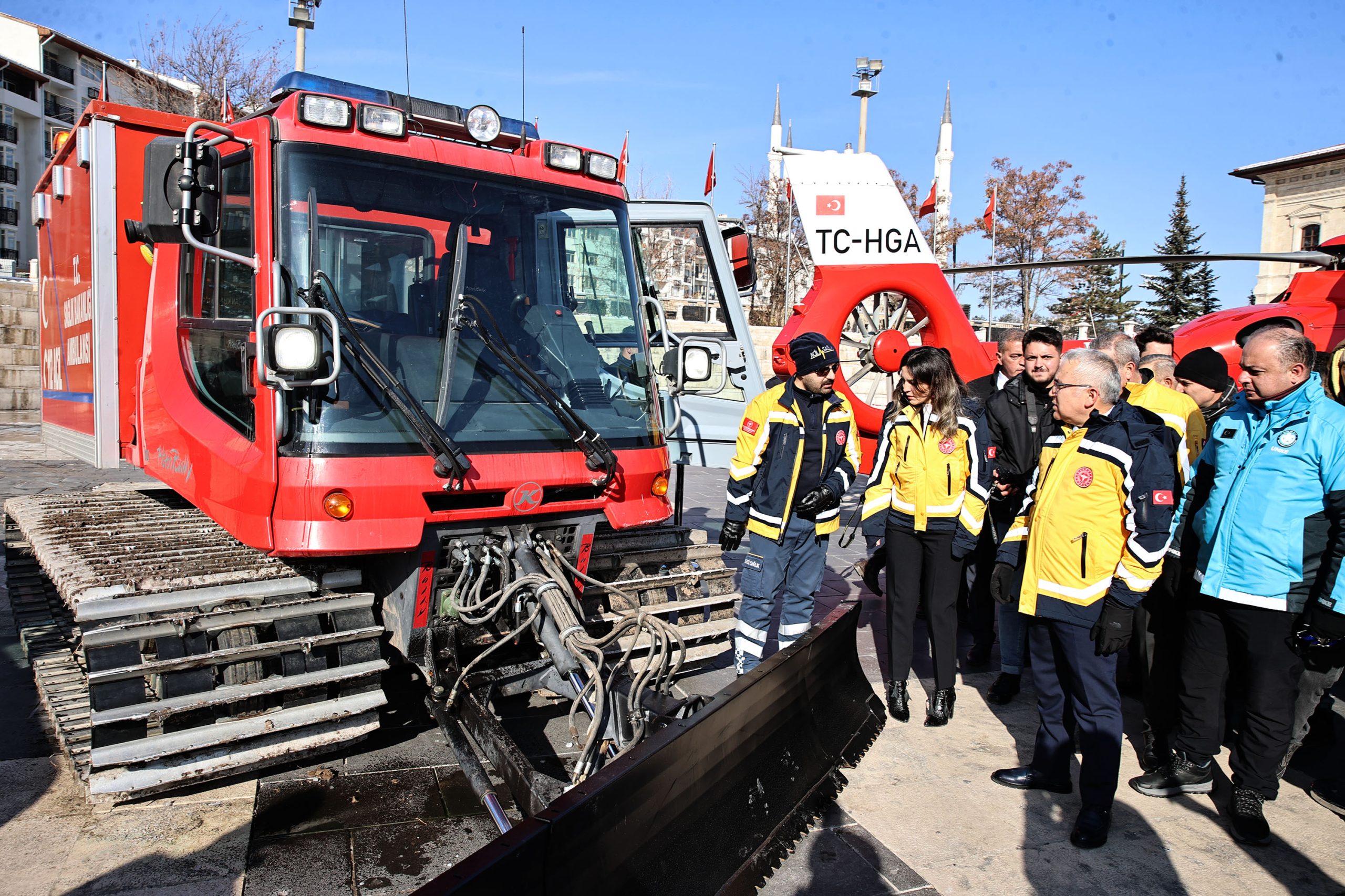 Şimşek çiftti daha sonra acil sağlık hizmetleri bünyesinde hizmet veren araç filosunu inceledi.