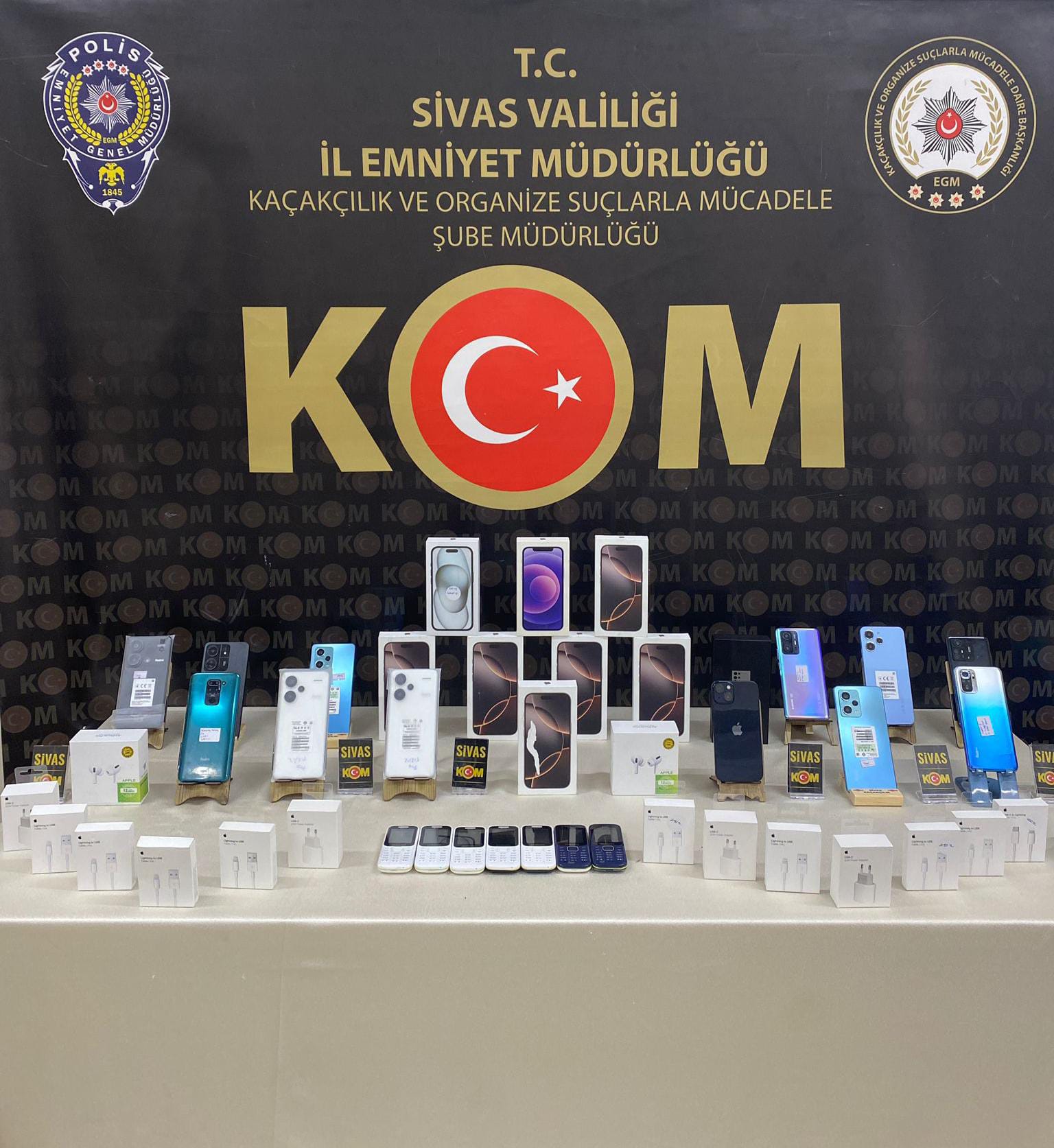 Kaçakçılık ve Organize Suçlarla Mücadele Şube Müdürlüğü ekiplerince, İlimizde cep telefonu kaçakçılığı faaliyetlerini önlemek maksadıyla Sivas Cumhuriyet Başsavcılığı koordinesinde yürütülen çalışmalar neticesinde;