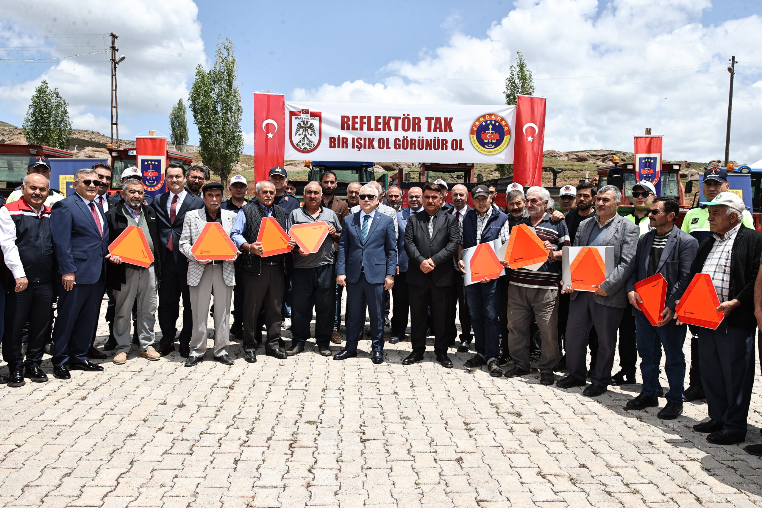 Programda konuşan Vali Yılmaz Şimşek, traktörlerin arkalarına taktığı römorkların özellikle gece saatlerinde trafik güvenliği riski oluşturduğunu ve bunun önüne geçebilmek adına İl Jandarma Komutanlığı tarafından dağıtım yapıldığı söyledi. Geçen 2 yılda traktörlerin karıştığı 56 kaza meydana geldiğini ifade eden Vali Şimşek “Malumunuz 2918 sayılı Karayolları Trafik Kanunu uyarınca, traktörlerin arka kısımlarında iki adet reflektör bulundurulması zorunludur. Bu zorunluluk, hem traktör sürücüleri hem de diğer araç sürücüleri için hayati önem taşımaktadır. Maalesef geçtiğimiz iki yılda jandarma sorumluluk bölgesinde 2023-2024 yıllarında toplam (56) elli altı kaza meydana gelmiş, bu kazalarda (1) bir vatandaşımız hayatını kaybetmiş, (68) altmış sekiz vatandaşımız yaralanmıştır” dedi.