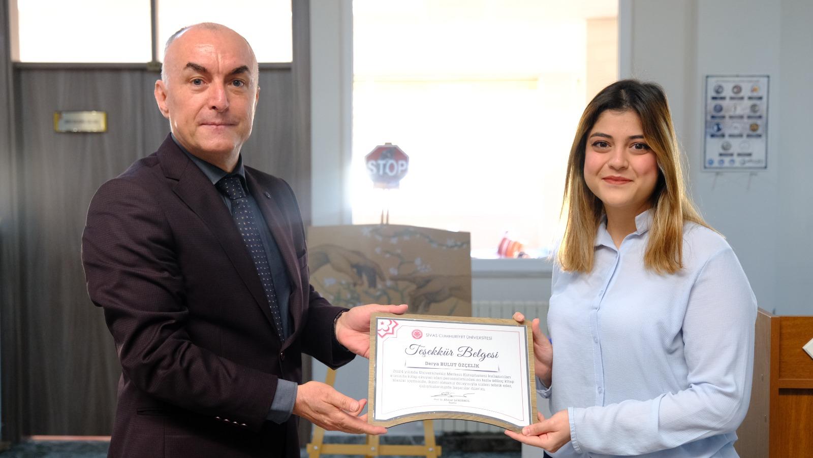 Konuşmaların ardından, Üniversitede en çok kitap okuyan akademik personellere, idari personellere, öğrencilere, kitapları en fazla talep edilen akademisyenlere, en fazla bağış yapan bağışçıya ve kütüphane ile iş birliği içinde olan birimlere, Rektör Yardımcısı Prof. Dr. Değirmen tarafından teşekkür belgesi verildi.