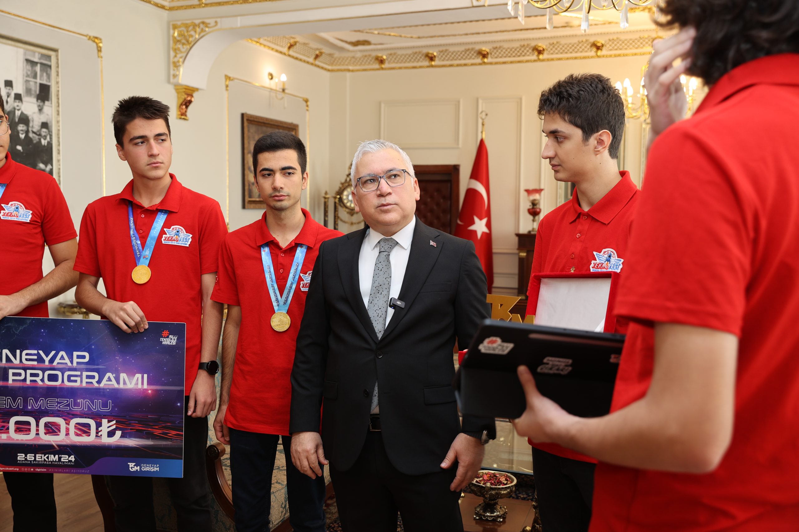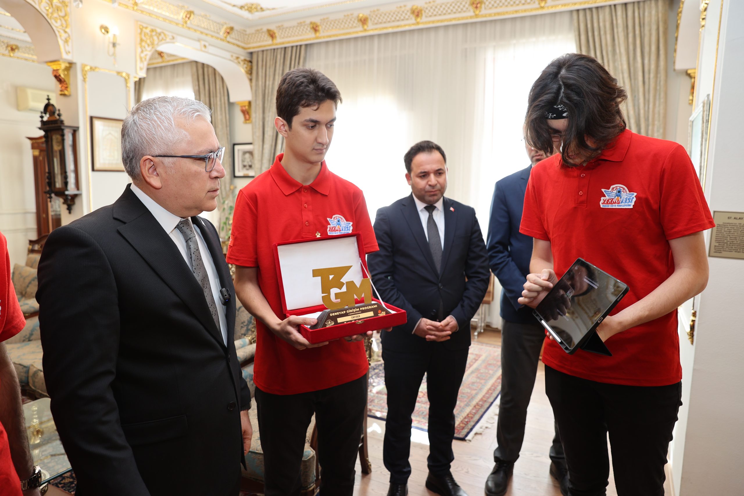 TEKNOFEST’te dereceye giren öğrencileri ve beraberindekilerini makamında kabul eden Vali Şimşek projeler hakkında bilgi aldı.
