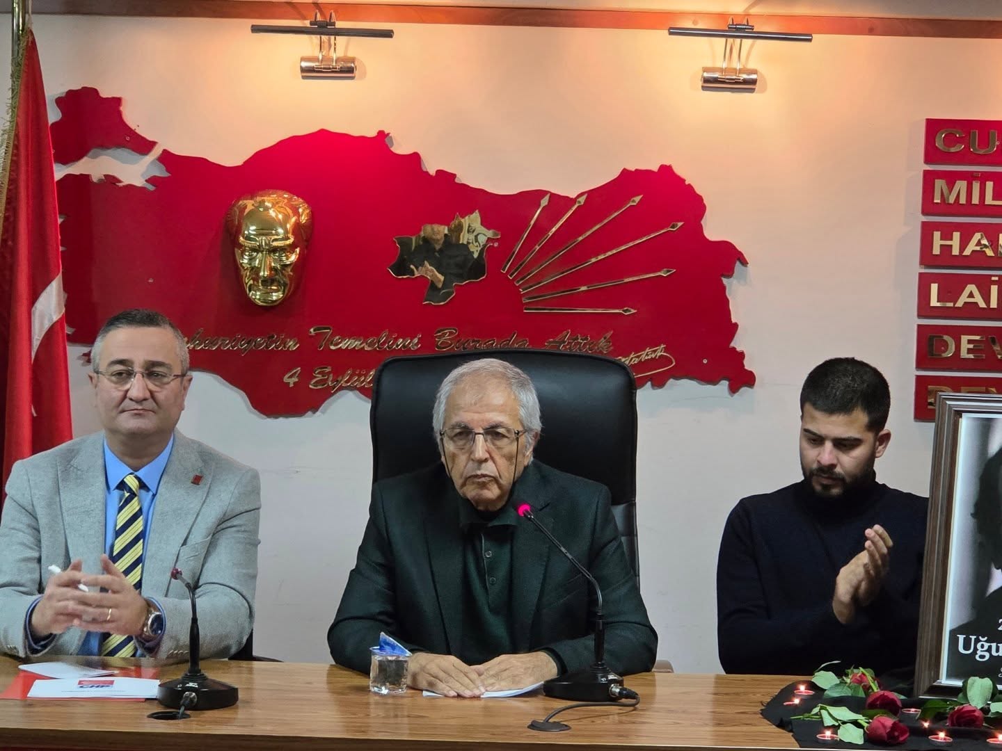Prof.Dr.Mehmet Akçay tarafından parti toplantı salonunda anma programına Chp İl Başkanı Yılmaz Coşkun Merkez İlçe Başkanı Ergüder Sümbüloğlu Sivas Kültür Derneği Başkanı Prof.Dr.Mustafa Koçkaya Atatürkçü Düüğnce Derneği Başkanı Özlem Özgür Kurt Gençlik Kolları Başkanı Baran Koçkanat ve Parti Örgütü katıldı.