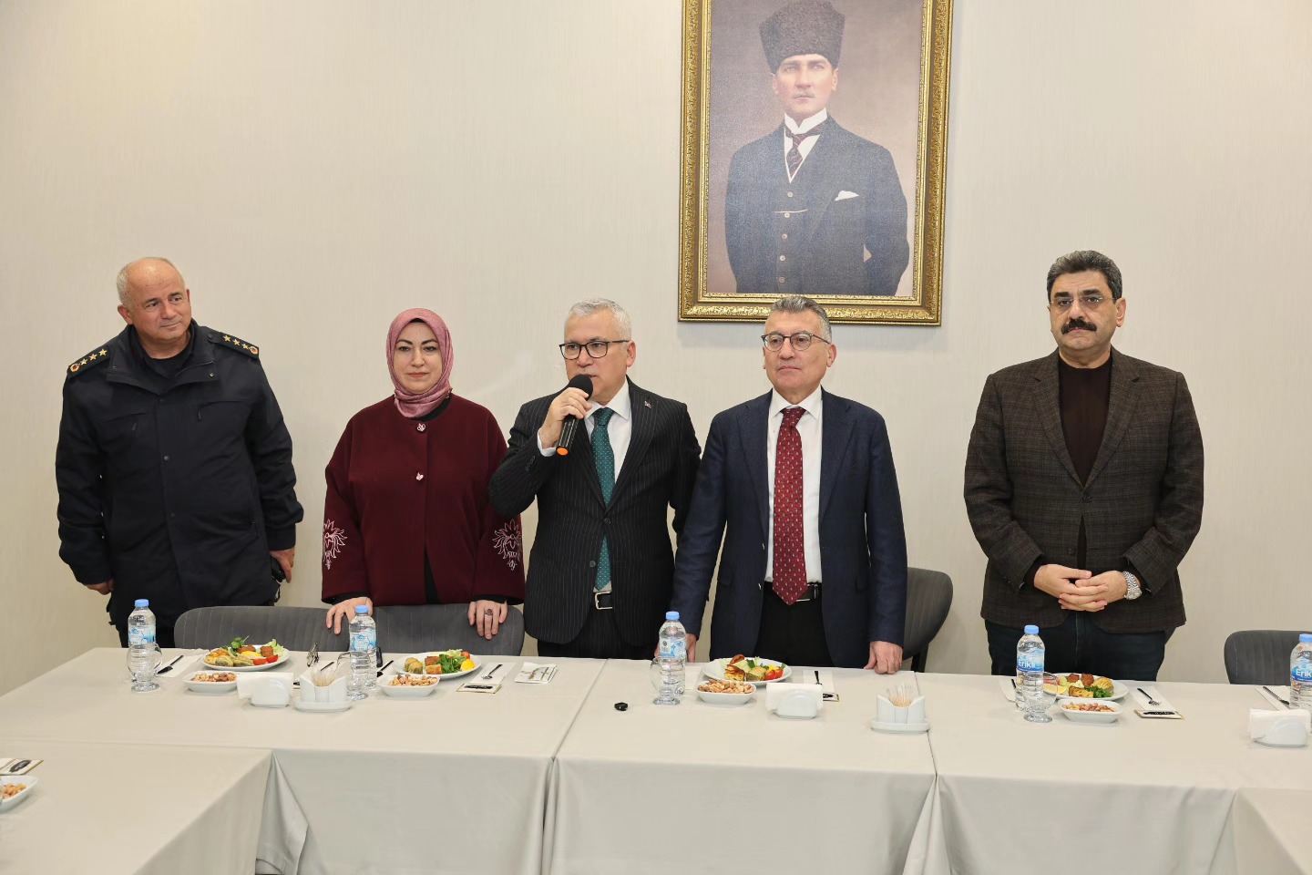 Vali Yılmaz Şimşek, TBMM AK Parti Grup Başkanı Abdullah Güler, Sivas Milletvekilleri Rukiye Toy ve Hakan Aksu, Üçlerbey Polis Merkezinde görev yapan emniyet personeliyle bir araya geldi.